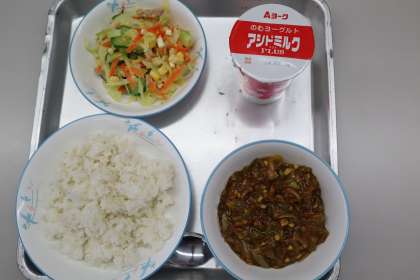 麦ご飯、ドライカレー、イタリアンサラダ、でした。