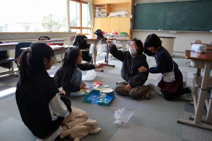 屋内では、理科で作った実験おもちゃで遊ぶ子がいました。