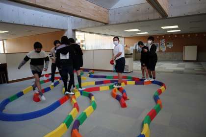 バランストレーニングの位置が移動されたので、興味がわいたのか、6年生達が遊んでいます。