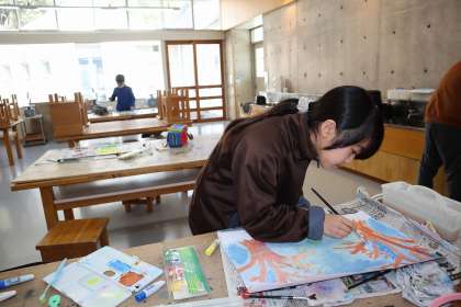 絵を描いていました。だいたい描き終わっている感じでした。