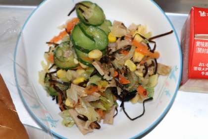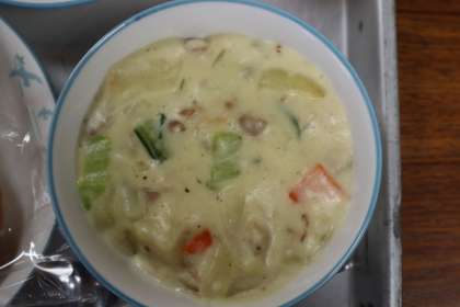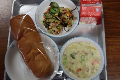 あいちの米粉パン、ほたてのクリーム煮、いろどりサラダ、でした。