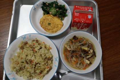 チャーハン、春雨スープ、かに玉、ほうれん草の中華サラダでした。