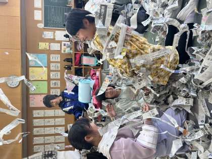 新聞紙が、ちりぢりになって、すごいことになっています。