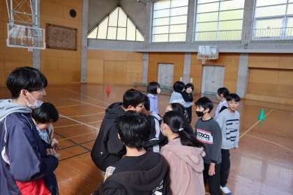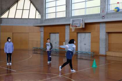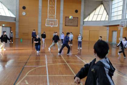 「先生と一緒に遊ぶ」という企画で、男の先生3名が加わってドッジボールをしました。