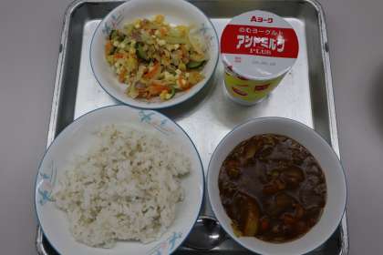 麦ごはん、発酵乳、カレー、イタリアンサラダでした。