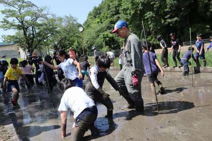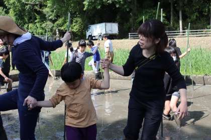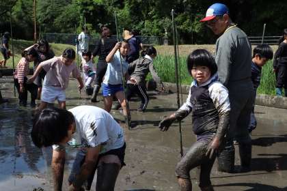 4年生と5年生は、慣れているので、どんどん田んぼに突入していきました。