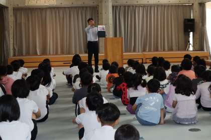 今日の校長先生の話は、最近マムシを見かけたので気を付けようという話と、SDGsから外来種の花の話がありました。
