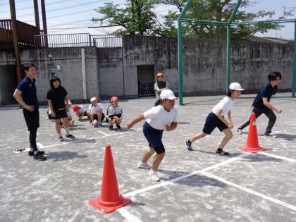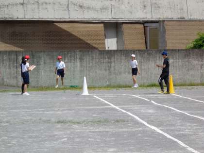 2、3時間目に、5、6年生がソフトバール投げと50メートル走を計測しました。