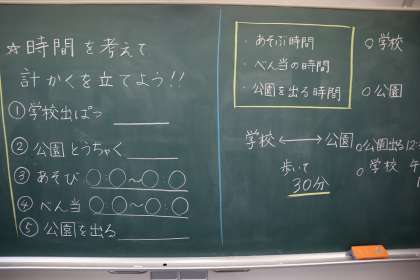 算数の時間の勉強かと思います。架空の予定を立てていました。