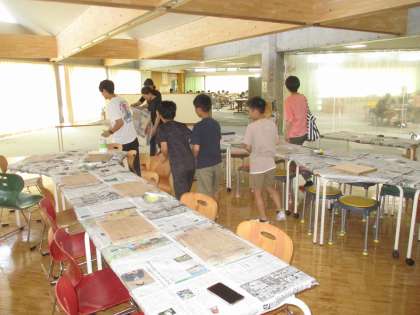 天気が心配なので、くつ箱の上に新聞紙を引きました。