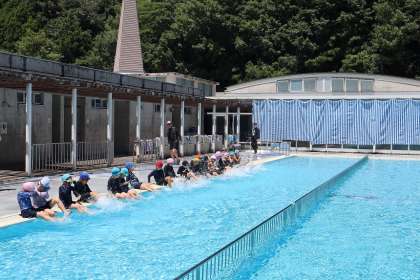 絶好のプール日よりでした。青空も、プールもブルーです。