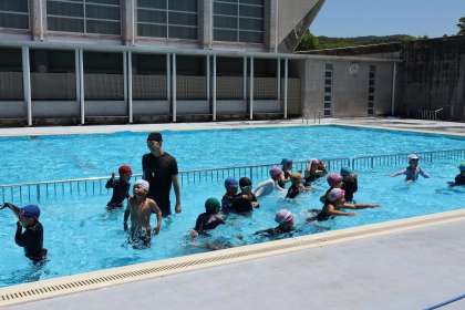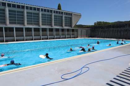 図工室横の廊下はプールのすぐ横にあります。午前中は直射日光が差し込んで、気温40度を超える暑さになります。