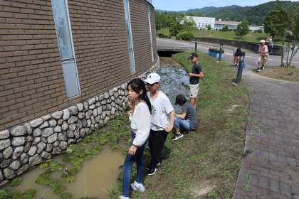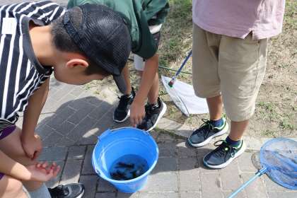 さすが、担任の先生は「釣りの達人」。達人の教えを受けて、濁っていて何も見えないのに次々と釣り上げていました。「アワ」で居場所が分かるそうです。