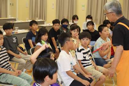 6月20日(木)15:00〜16:30、学校のお隣の「ぬくも里」(品野台地域交流センターで、子育て支援グループの皆さんの企画で「実験授業」が行われました。