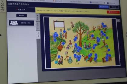 1学期は、各担任がタブレットを活用した授業を、職員に授業公開して、タブレットの活用方法について学び合っています。