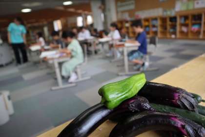 今日は野菜が収穫できたので、「きゅうり」が書けました。