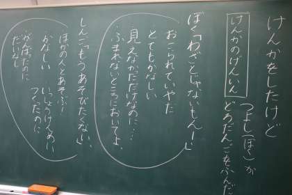 5時間目、ワークシートに書いて勉強していました。