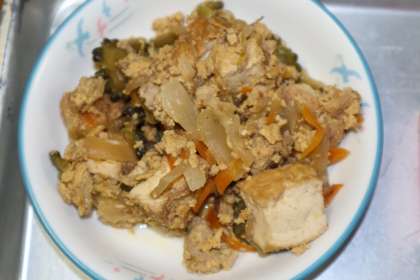 ごはん、シブイ汁、ゴーヤチャンプルーでした。
