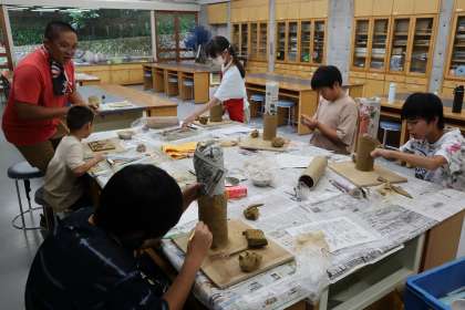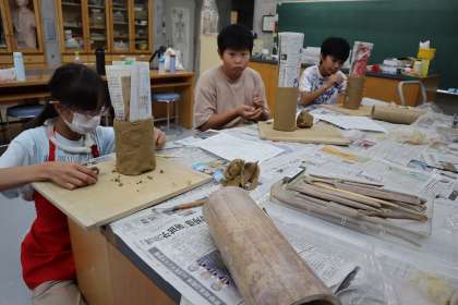 6月の「ふれあい学級」を欠席した子達が、動画を見て、作陶をしました。