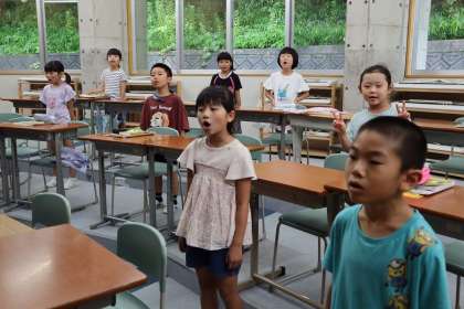 3時間目の最後、校歌をみんなで歌っていました。