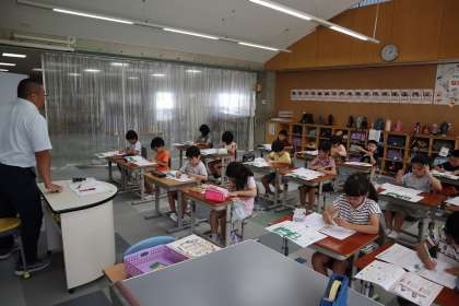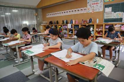 5時間目、2年生のみんなは、背筋を「ピンッ!」と伸ばして、字を書いていました。