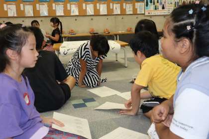 ハピニコの今日のめあては、「あいさつをする」「相手の目を見る」「うなずいて聞く」です。