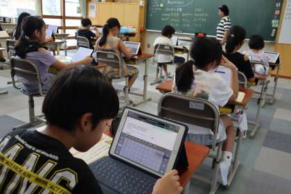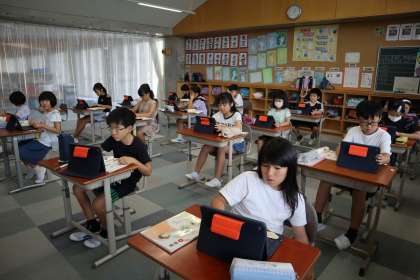 「相手のことを思いやって」という教材で、「自分の考え」をタブレットで送信しているところのようでした。