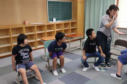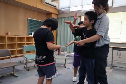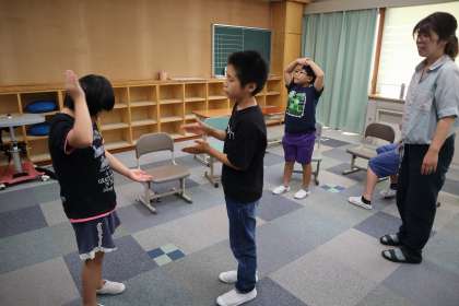 歌に合わせて、手のひらをタイミング良くたたいています。