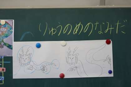 2時間目、「りゅうのなみだ」の題材で、下絵を描いていました。