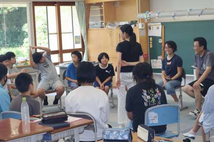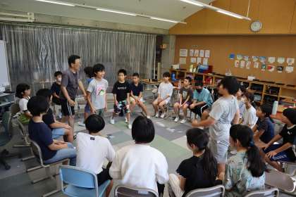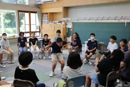 2時間目、円をつくって「話し合い?」をしているかと思い近づいたところ、「フルーツバスケット」の変形バージョンで、楽しい「話し合いゲーム」をしていました。