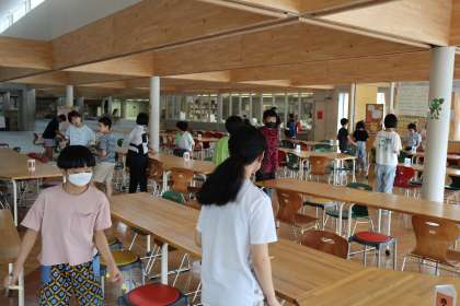 来週からランチスペースを活用して、縦割り班で給食を食べます。座席が分かるように、6年生が表示物を並べたり、付箋を貼ったりしてくれています。ありがとう!