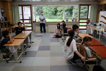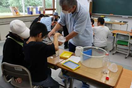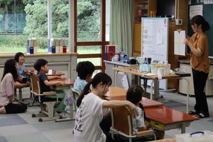 トイレットペーパーを原料にして「紙すき」をして、できあがった紙に色を付けました。