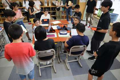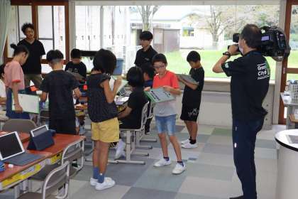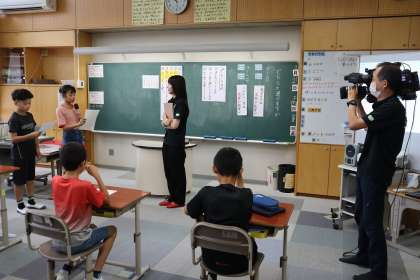 「話し合い」活動をしていました。授業の様子をケーブルテレビさんが取材に来ました。