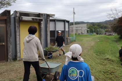 2時間目の授業参観のあと、10:50〜11:30まで、小学生は運動場の草取りを親子でしました。ビオトープは、草刈り機を持っている方達がきれいにしたくださいました。