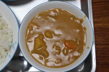 ハヤシシチュー、いろどりサラダ、麦ご飯でした。