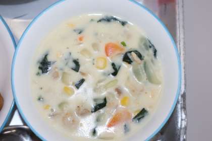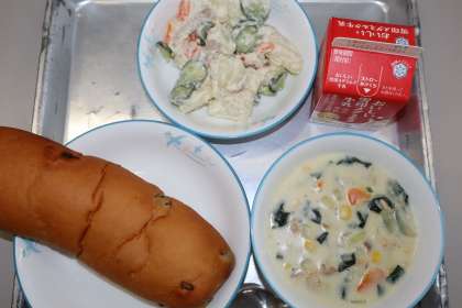 レーズンロールパン、ほうれん草のシチュー、ポテトサラダでした。