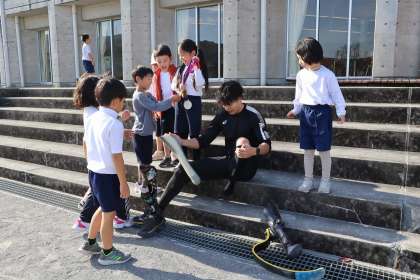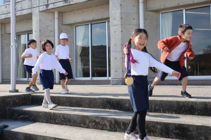 子ども達は「1位を取ったら金メダル! 2位を取ったら銀メダル! 3位を・・・」と、メロディー付きで声援を送っていました。