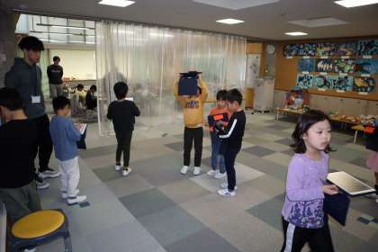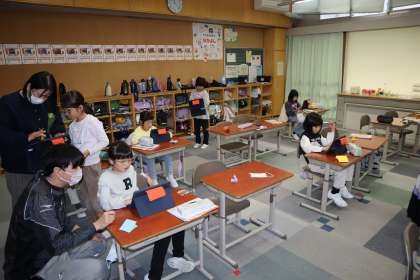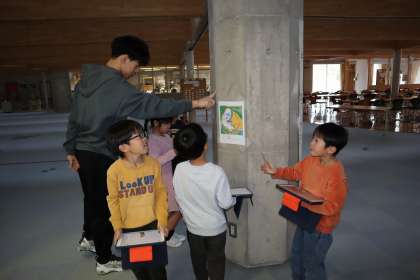 タブレットを持って、うろうろしていました。勉強のために何かを探しています。算数で勉強する何かです。