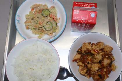 マーボー豆腐、バンバンジーサラダ、ごはん、でした。