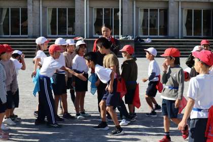 今日の体育は、「しっぽ取り」で始まりました。瞬発力がアップしていきますね。3年の勢い、4年の粘り強さがあらわれていました。