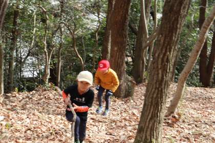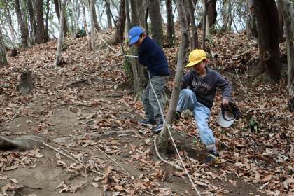 昼休み終了の音楽が鳴ったので、大急ぎで谷を下りています。