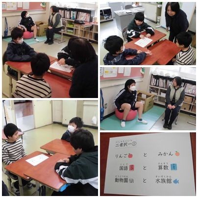 毎週水曜日に取り組んでいる「ハピニコタイム」。子どもたちは、「二者択一」のお題にも、すいぶん慣れてきました。高学年が上手くリードして、会話をつなげてくれているペアも多かったです。