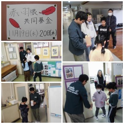 赤い羽根共同募金は、今日が最終日です。委員会の子どもたちが、教室や職員室を回って、募金を呼びかけていました。
