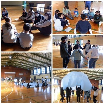 品野中学校ブロック4校(品野中・品野台小・下品野小・掛川小)の特別支援学級在籍児童生徒が集まり、中学校の体育館で、あすなろ交流会を行ないました。各校入り交じった4グループに分かれ、自己紹介などの「なかよしタイム」、パラバルーンの「わくわくタイム」、カップ積みなどの「どきどきタイム」を楽しみました。