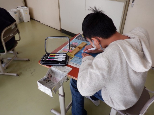 4年生は、社会科の学習とも絡めながら、自分で題材を決め、資料や図鑑などで調べたことをもとにリーフレットを作っていました。資料の説明文を書き写すだけでなく、要約したり、文の組み立てを工夫したりして、わかりやすいリーフレットにしようとがんばっていました。