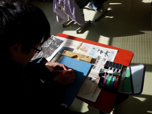 下絵、転写、彫り、刷りなどたくさんの工程を経ていきますが、本日は、どの学年も下書きがほぼ完成しており、転写、彫りに入ってきました。学年ごとにテーマを決めて、どの子も熱心に取り組んでいました。最後の刷りまで集中を継続させて仕上げ、力作がそろうことを楽しみにしています。
