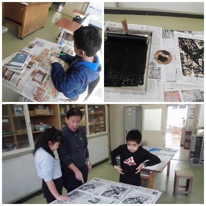 授業の様子【版画+】 公開日 2025/12/12 更新日 2025/12/12 今日のスナップ 「線の太さはどれくらい?」「黒く残すためには、どうしたらいいのかな?」いろいろ考えながら、1・2年生は、石こう版画、3~6年生は、木版画に黙々と取り組んでいました。 一足早く、版画の制作にとりかかった3・4年生は、今日、本刷りまでできました。その他の学年も、12月中の完成を目指し、進行していくようです。 この時間、やまびこ組は、調理実習をしていました。何を作ったのかな?