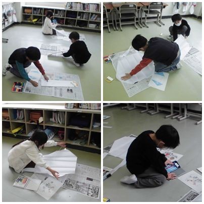 授業の様子【1・2年生 図工】 公開日 2026/02/27 更新日 2026/02/27 今日のスナップ 教室中に広がって、真っ白な「凧」に絵を描いていました。 自分が考えた元絵を見ながら、マジック、クーピー、絵の具など、自分が使いたい道具を選んで、どんどん描き進めていました。勢い余って床に色が…なんてこともありましたが、「<オリジナル凧>を作るんだ!」とがんばっていました。 完成したら、運動場で凧揚げをするそうです。来週、できるかな?