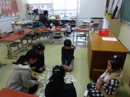 朝の掛川タイムで、百人一首の練習が始まりました。1月31日の大会に向けて力を付けようと、子どもたちは一生懸命です。
