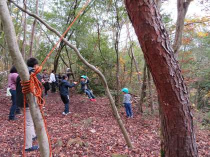 滑車でゴー、空飛ぶじゅうたんという遊具もあります。各遊具では小学生のお手伝いが活躍します。本日このイベントにご参加いただいた方々はお疲れ様でした。ありがとうございました。